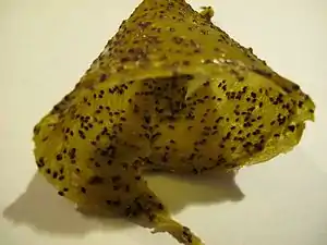 - Patriotique : il s'agit du nom vernaculaire de l'apterygiforme, l'emblème de la Nouvelle-Zélande. Selon une hypothèse parfois rejetée[12], cette appellation serait due à la ressemblance du fruit avec cet oiseau[14],[16],[20].
