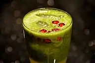À maturité, la pulpe du kiwi généralement verte (parfois jaune pour certaines variétés) est sucrée et acidulée, entourée d'une peau souvent brune et duveteuse, et contient une centaine de minuscules graines noires comestibles.