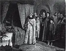 - 1899 : Ambassadeurs auprès du boyard Strechnev. Huile sur toile. Réserve du musée d'État à Smolensk
