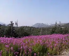 Le fleuve Yukon vu depuis la Klondike Highway. | |