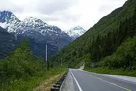 Elle passe en Alaska pendant 15 kilomètres, par le col White dans la Chaîne Côtière où elle traverse la frontière canadienne avec la Colombie-Britannique où elle continue sur 56 kilomètres. Puis, elle entre dans le Yukon où elle rejoint la Route de l'Alaska près de Whitehorse, et partage une courte section avec cette dernière avant de se diriger vers la Cité de Dawson.