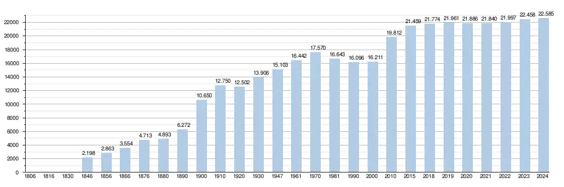 22 023 () 50,12 % 49,88 % 18 542,58 hab./km2 |
