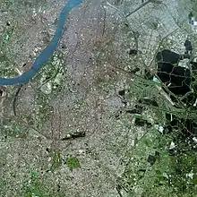- Le fort William entre le fleuve Hooghly et le grand espace vert appelé Maïdan.