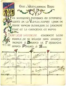 Ainsi le l’Oost- en Westvlaamsche Kring naquit officiellement. Cette association rassemble des étudiants originaires de ou domiciliés dans l’une des deux Flandres (Codex Art.1).