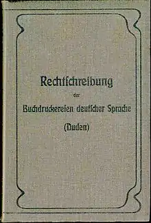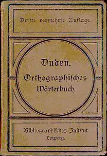Le « Dictionnaire systématique de l'orthographe allemande » (en allemand : Vollständiges Orthographisches Wörterbuch der deutschen Sprache), paru le aux éditions Bibliographisches Institut, est le premier lexique publié par Duden : en 187 pages, il comporte une liste de quelque 27 000 lemmes[5]. Contrarié par le succès de l'ouvrage, Bismarck fait interdire par décret l'usage, dans l’administration, de l'orthographe enseignée dans les lycées. Il faut attendre 1901 pour que les représentants des États allemands et d'Autriche-Hongrie conviennent de réunir une conférence à Berlin pour unifier les règles orthographiques, sur la base du dictionnaire de Duden. En 1902, une loi votée par le Bundesrat rend obligatoire l'adoption des « Règles de Duden pour l'orthographe et la correspondance des mots » (Regeln für die deutsche Rechtschreibung nebst Wörterverzeichnis) dans tous les états de l'Empire allemand ; l’Autriche-Hongrie et la Suisse adoptent à leur tour la réforme. L'expression « Regarde dans le Duden ! » (Schlag im Duden nach!) devient proverbiale[6]. En 2013, le Duden en était à sa 26e édition ; il comporte environ 140 000 mots ou radicaux (car les mots composés sont d'emploi systématique dans les langues germaniques comme l'allemand).