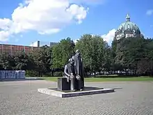 Les autorités de la République démocratique allemande ont érigé sur une place historique du centre de Berlin, à Mitte, au début des années 1980 un monument en hommage aux théoriciens révolutionnaires socialistes et communistes allemands Karl Marx et Friedrich Engels. Cette place fut baptisée à cette occasion Marx-Engels-Forum.