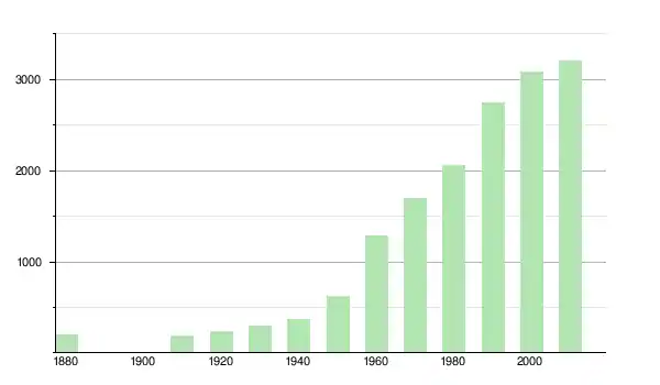 Selon le recensement de 2000[2], la ville comptait 656 familles, 889 foyers et 3 082 habitants, ce qui représente une densité de 44,1 hab./km2.