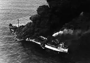Le tanker MS Pennsylvania Sun torpillé par le sous-marin allemand U-571 le 15 juillet 1942.