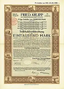 Obligation de la Fried. Krupp AG en date du 15 fevrier 1921
