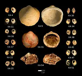 - (en) Katerina Douka, « An Upper Palaeolithic shell scraper from Ksar Akil (Lebanon) », Journal of Archaeological Science, vol. 38, no 2, , p. 429–437 (ISSN 0305-4403, DOI 10.1016/j.jas.2010.09.026, lire en ligne, consulté le ), accès au texte intégral
