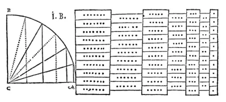 Le document original de Bürgi (reproduit dans la Figure 1) donne un exemple pour . Le tableau se lit de droite à gauche :