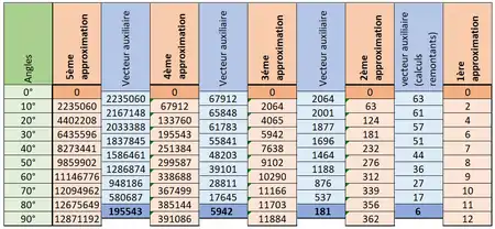 - les deuxièmes approximations se trouvent dans la colonne notée et ainsi de suite.