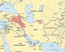 Le Kurdistan est divisé entre la Turquie, l'Iran, l'Irak et la Syrie. Au XXe siècle, les Kurdes ont été persécutés par les États dans lesquels se trouvent les principales populations. La partition de l'Empire ottoman après la Première Guerre mondiale a provoqué la division du Kurdistan ottoman entre l'Irak, la Syrie et la Turquie. La création de ces États-nations impliquait l'assimilation culturelle forcée et l'assimilation linguistique des Kurdes dans les cultures et les langues des Arabes, des Turcs ou des Persans[2]. Outre ces trois groupes, les Kurdes sont le peuple le plus nombreux du Moyen-Orient.