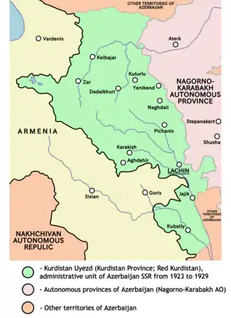 Le Kurdistan rouge (en kurde : Kurdistana Sor ; en azéri : Qızıl Kürdistan ; en russe : Красный Курдистан, Krasnyy Kourdistan), ou Ouïezd du Kurdistan (en russe : Курдистанский уезд) est une unité administrative soviétique qui a existé pendant six ans de 1923 à 1929[1]. Sa capitale était Berdzor (en kurde : Laçîn).