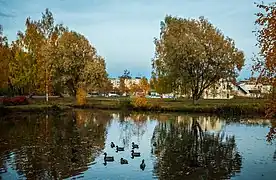 Après l'étang, le ruisseau s'écoule entre Tikkurila et Koivuhaka vers Viertola et la Keravanjoki.