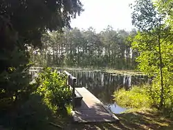 Vue sur le lac depuis le lieu de repos Allikajärvi dans la zone de loisirs de Nõva