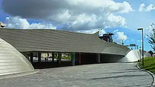 Passage souterrain du pont de Länsilinki. En arrière-plan l'Hôtel Clarion et le siège de Supercell . | |