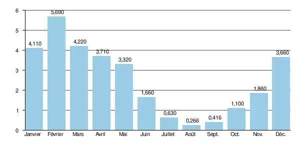 Aux étiages, le VCN3 peut chuter jusque 0,004 m3/s en cas de période quinquennale sèche (quatre litres par seconde), c'est-à-dire que le cours d'eau peut tomber presque à sec.
