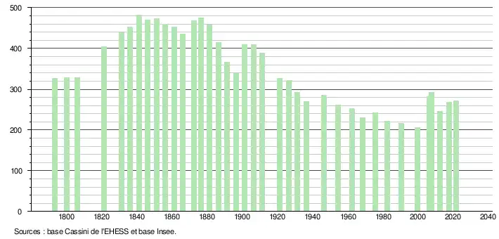| Rang de la commune dans le département | 258 | 290 | 295 | 321 | 340 | 308 | 304 | 353 |