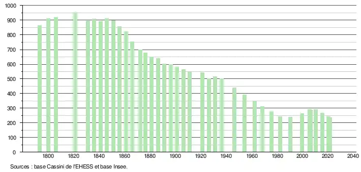 - Population municipale légale en vigueur au 1er janvier 2024, millésimée 2021, définie dans les limites territoriales en vigueur au 1er janvier 2023, date de référence statistique : 1er janvier 2021.