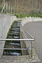 En 1697[citation nécessaire], son cours a été détourné par la construction d'une galerie de 2 800 mètres dont on a récemment[Quand ?] retrouvé la trace[5]. Le ruisseau passait à l'air libre place du Brouck (marais, actuellement place Hector Denis) et s'enfonçait dans le coteau pour amener ses eaux au second moulin de la Légia, le moulin Renson, situé au sommet du promontoire schisteux que l'on trouve au bas de la rue de la Légia. Le long de cette même rue, le mur de soutènement du talus est constitué d'anciennes dalles qui recouvraient le ruisseau. En suivant son cours, on passe rue des Moulins et plus bas encore, rue des Meuniers, témoignages de l'utilisation de ce cours d'eau comme force motrice.