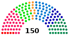 Les dernières élections, qui ont eu lieu le [1], ont donné la répartition suivantes des sièges par groupes politiques[2] :