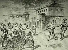 Ainsi, est une agression une invasion, mais aussi un blocus ou un bombardement. L'arrêt Activités militaires et paramilitaires au Nicaragua [2] de la Cour internationale de justice () y ajoute « l'envoi par un État ou en son nom de bandes et de groupes armés (…) contre un autre État d'une gravité telle qu'il équivaut à une véritable agression accomplie par des forces régulières ». En revanche, l'ONU a refusé la demande des pays du tiers monde d'ajouter à la liste l'agression idéologique ou économique[3].