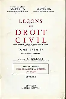 - Mazeaud H., L. et J., Leçons de droit civil, préface de la 1re éd., Paris, Montchrestien, 1955