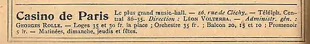 - L'histoire du Casino de Paris, et Volterra : « Le règne de Volterra dura douze ans, vingt-quatre revues furent montées »