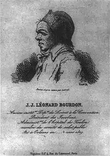 Il est également connu sous le surnom de « Léopard Bourdon », obtenu par corruption de son prénom[37],[61]. Son invention a été attribuée à Jacques Pierre Brissot[62], qui l’appelait aussi « Léonard-Septembre[63] ». De son côté, Barras affirme dans ses mémoires que Fréron employait plaisamment ce sobriquet de « Léopard » pour le désigner[64]. Ce surnom est passé à Orléans après l’affaire de son prétendu « assassinat » du [65],[66]. La Biographie Michaud attribue, quant à elle, son origine à des journalistes qui l’utilisaient après Thermidor[67].