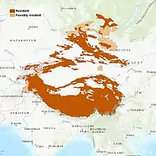 L'aire de répartition de la Panthère des neiges est très vaste, les estimations variant entre 1,8 et 3 millions de kilomètres carrés[36]. On estime que l'aire de répartition historique s'étendait sur 2,5 millions de kilomètres carrés, tandis que l'aire actuelle, très morcelée, serait de 1,2 à 1,6 million de kilomètres carrés[8].