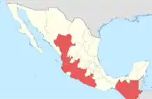 La carte ne correspond pas au texte puisque les États de Mexico, d'Oaxaca, du Sinaloa et du Sonora ne sont pas en rouge. Erreur lors de la conception de la carte ?