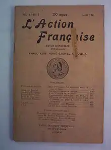 La pensée maurrassienne a été adoptée par des groupes d'intellectuels canadiens sensibles à cette référence pour intervenir dans des débats culturels, identitaires et politiques : L'Action française est un périodique puis le nom d'une ligue (1921-1927), soutenus par un groupe de défenseurs de la langue française et dirigé pendant dix ans par le prêtre Lionel Groulx qui est le théoricien : défense de la langue française, de la famille, de la ruralité[3]. La ligue défend l'idée d'un État pour les Canadiens français, protecteur contre les menaces de la modernité urbaine. Certains eurent des contacts personnels avec des dirigeants de L'Action française et retinrent de la pensée de Maurras l'hostilité à la démocratie et au parlementarisme, la distinction entre pays légal et réel et les conceptions esthétiques (génie latin, classicisme français)[3]. À la suite de la condamnation de l'Action française en 1926, le mouvement changera de nom et deviendra l'Action canadienne française[4].