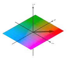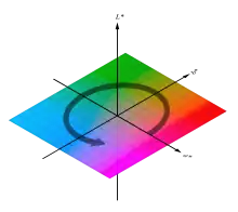 On utilise parfois les coordonnées polaires dans le plan (a*, b*) pour représenter la chrominance par un angle de teinte et une chromaticité.