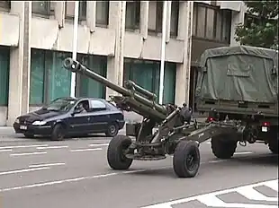 Un obusier LG-1 de 105 mm en démonstration lors des journées portes ouvertes de l'armée singapourienne. | |