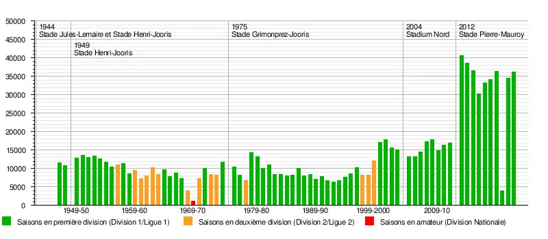 - « Historique des affluences du LOSC », sur stades-spectateurs.com (consulté le ).
