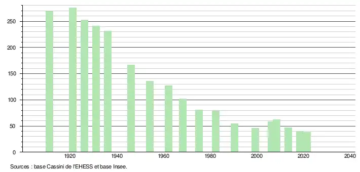 À la suite de l'exode rural caractéristique des révolutions industrielles, la commune a vu son nombre d'habitants diminuer.