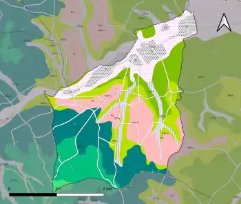 La superficie cadastrale de la commune publiée par l'Insee, qui sert de référence dans toutes les statistiques, est de 6,95 km2[11],[17],[Note 2]. La superficie géographique, issue de la BD Topo, composante du Référentiel à grande échelle produit par l'IGN, est quant à elle de 6,97 km2[8].