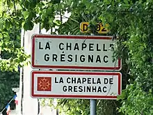 - Le nom occitan des communes du Périgord - La Chapela de Gresinhac sur le site du Conseil général de la Dordogne, consulté le .
