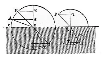 - Descartes ne parle pas de sinus d'angle mais de projection sur la normale à la surface des intersections des rayons incidents et réfracté avec un cercle centré sur le point de réfraction.