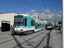 La rame TFS no 104, dans l'arrière-station de La Courneuve - , terminus temporaire de la ligne.