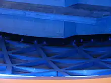 En dessous de cette couche externe se situe l'armature métallique principale constituée de tubes creux en acier, reprenant toujours la même structure géodésique, sur laquelle reposent plusieurs couches assurant respectivement l'isolation thermique et phonique, ainsi que l'étanchéité[9]. La protection incendie de la structure est assurée par des coquilles en laine de roche protégées par des capotages en acier galvanisé.