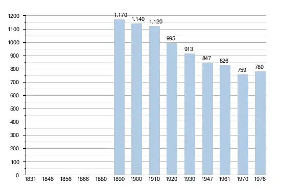 - Sources : INS, Rem. : 1831 jusqu'en 1970 = recensements, 1976 = nombre d'habitants au 31 décembre.