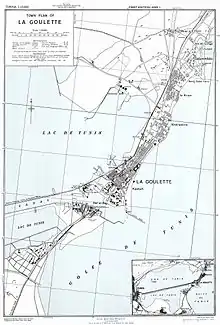 Commandant l'accès au lac de Tunis, La Goulette joue pendant des siècles un rôle militaire important. Occupée par les Turcs, elle est conquise en 1535 par l'armée de Charles Quint (qui compte 400 vaisseaux et 30 000 hommes) lors de la bataille de Tunis[15]. La forteresse de la Carraca, qui existe toujours, est édifiée par les Espagnols puis agrandie par les Turcs lorsque, en 1574, ils reprennent la ville[16]. La population goulettoise est, au départ, composée exclusivement de Turcs et de Maures. Mais la cité se développe à partir du milieu du XVIIIe siècle en tant que quartier, par extension, de la capitale à la suite de l'arrivée, d'abord modeste, d'immigrés provenant de Malte et de Sicile (en particulier des provinces de Palerme, Trapani et Agrigente) attirés par les perspectives de travail liées aux activités maritimes et portuaires.