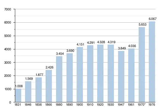 - Sources : INS, Rem. : 1831 jusqu'en 1970 = recensements, 1976 = nombre d'habitants au 31 décembre.