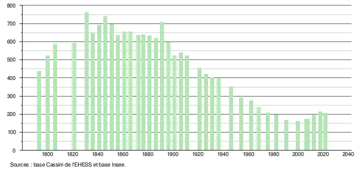 (Sources : Ldh/EHESS/Cassini jusqu'en 1999[16] puis Insee à partir de 2006[25].)