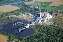 Route entre La Maxe et Metz, avec la centrale thermique EDF au fond.