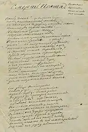 Ouvert le , en aval des événements, il est conservé à la Maison Pouchkine (op 3, n° 9, L. 17-18)[4]. Le Messager de l'Europe («Вестник Европы») est le premier à le publier en 1887[12].