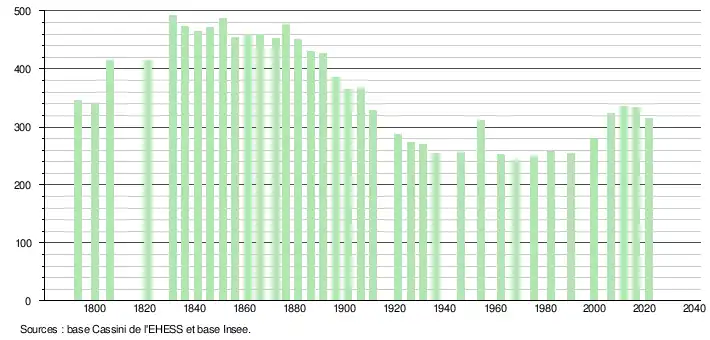 - Fiches Insee - Populations légales de la commune pour les années 2006, 2007, 2008, 2009, 2010, 2011, 2012, 2013, 2014, 2015, 2016, 2017, 2018, 2019, 2020 et 2021.