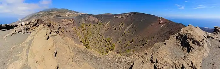Le volcan Cumbre Vieja est entré en éruption dimanche 19 septembre 2021 peu après 15 heures locales (soit 14 heures GMT) 50 ans après sa précédente éruption, en 1971. La coulée de lave a détruit quasiment 3 000 bâtiments et entraîné l'évacuation de 7 000 personnes[9]. Au lendemain du début de l'éruption, l'Institut volcanologique des îles Canaries estime que cette phase d'activité du volcan devrait durer plusieurs semaines en raison de la présence d'une seconde poche de magma située à 20 ou 30 kilomètres de profondeur[10]. Une nouvelle langue de terre de 338 hectares en forme de " D " s'est déjà formée par la coulée de lave du volcan qui continue de s'accumuler dans l'océan, la silhouette de La Palma se transforme.